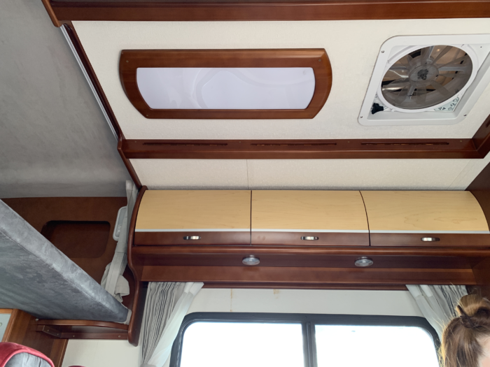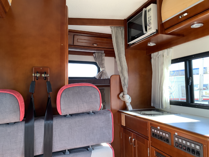やっぱり立って移動ができること、座る場所・シンク・ベッド(後部二段ベッド、運転席上のバンクベッド)がそれぞれ独立していること、さらに荷物もそれなりに置けることを体感して、「キャブコンってすげぇ…」「買うならキャブコンかなあ」って思ったんです。