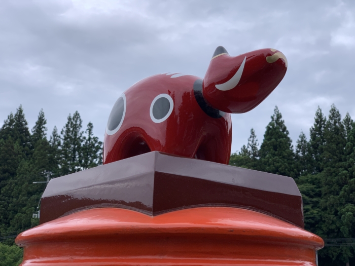 どこに行っても赤べこだらけです。男鹿のナマハゲくらい、シンボルとして至るところにいます。かわいい。