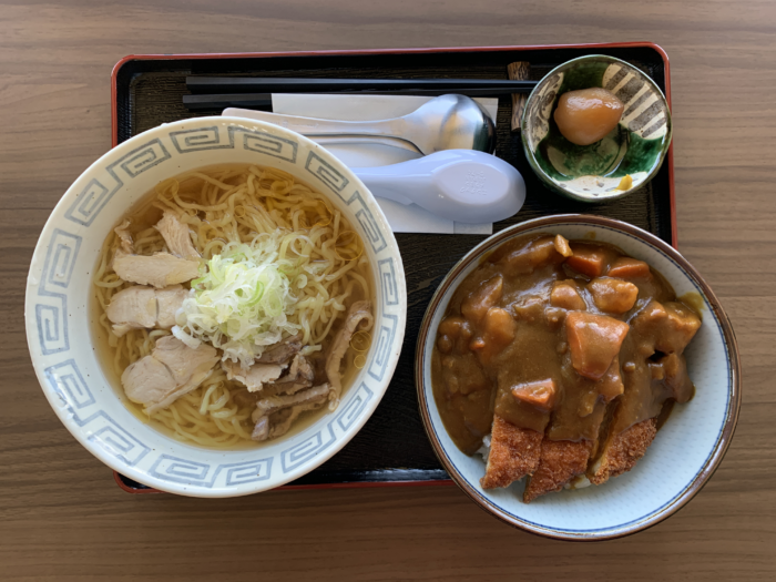 ラーメンとカツカレー丼のセットを注文しました。野菜大きめのカレーです。玉こんにゃくもついててうれしいです。