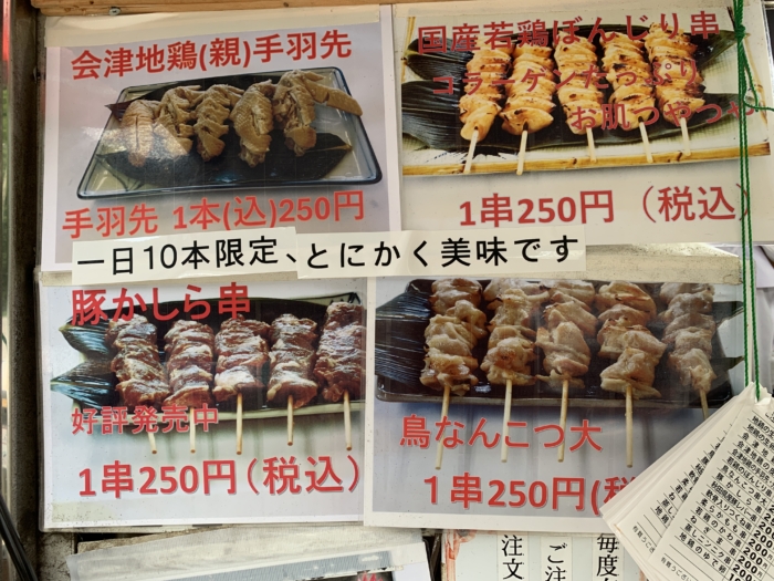 会津地鶏の焼き鳥。めっちゃうまかった。焼きたて最高!