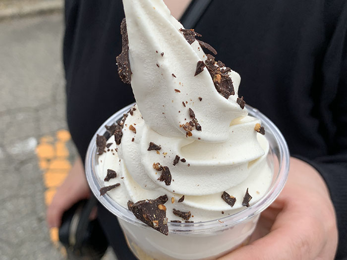 ソフトクリームを注文したお客さんが、「アレルギーは大丈夫ですか?」と聞かれていました。ソフトクリームは蕎麦ソフトクリームしかないみたいです。