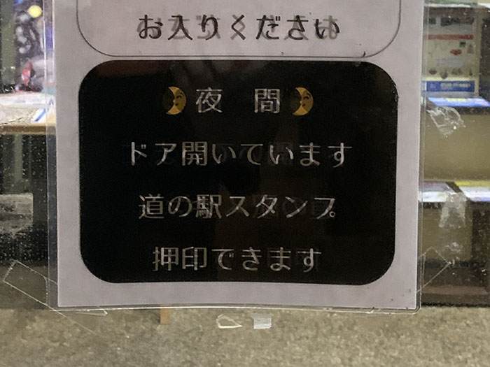 「夜間ドア開いています、道の駅スタンプ押印できます」の文字が!ありがとうございます。