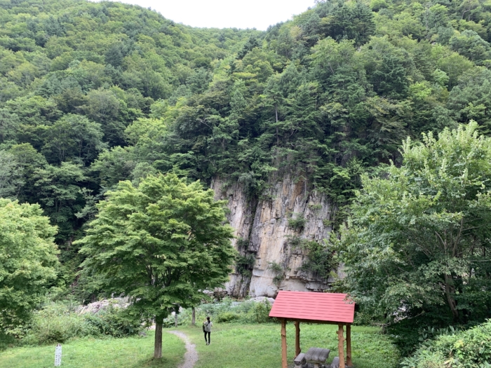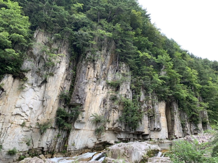 道の駅番屋から道の駅尾瀬檜枝岐に向かう途中に屏風岩がありました。