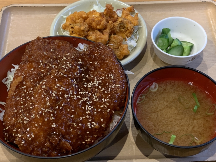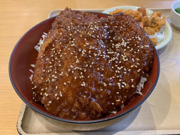 上アゴをヤケドしたくらい、熱っつあつのカレーソースが嬉しいです。サラダや小鉢や味噌汁もセットになっていて、丁寧に作られてる感じがしました。