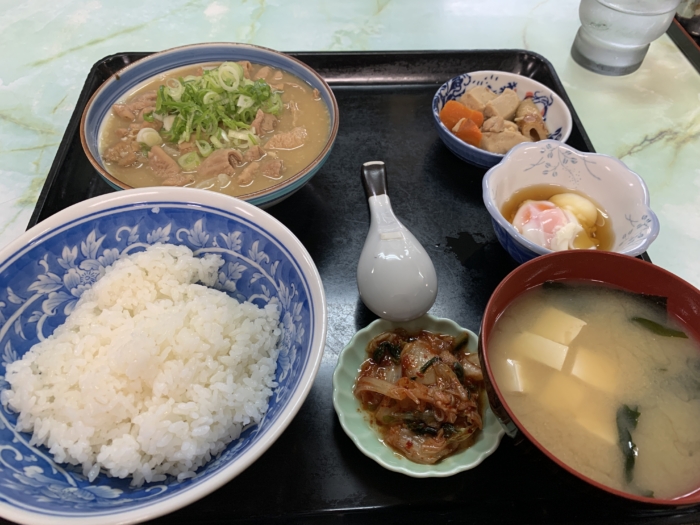 ホルモン煮込み定食を注文しました。周のお客さんが注文してるカツカレーの見た目が好みでした。次回はカツカレーを注文しようと思います。