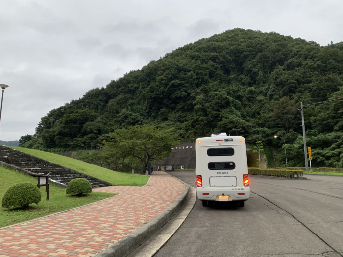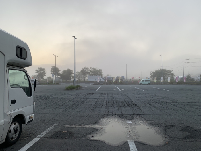 駐車場も平面だし広いし静かだし、涼しかったのでここに泊まりたい気持ちもあったのですが、食べ物を買ってきてなかったので、あらためて出発しました。