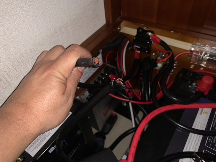 元々接続されていたケーブルも切断します。RENOGYに付属していたケーブルにつなぎ直します。